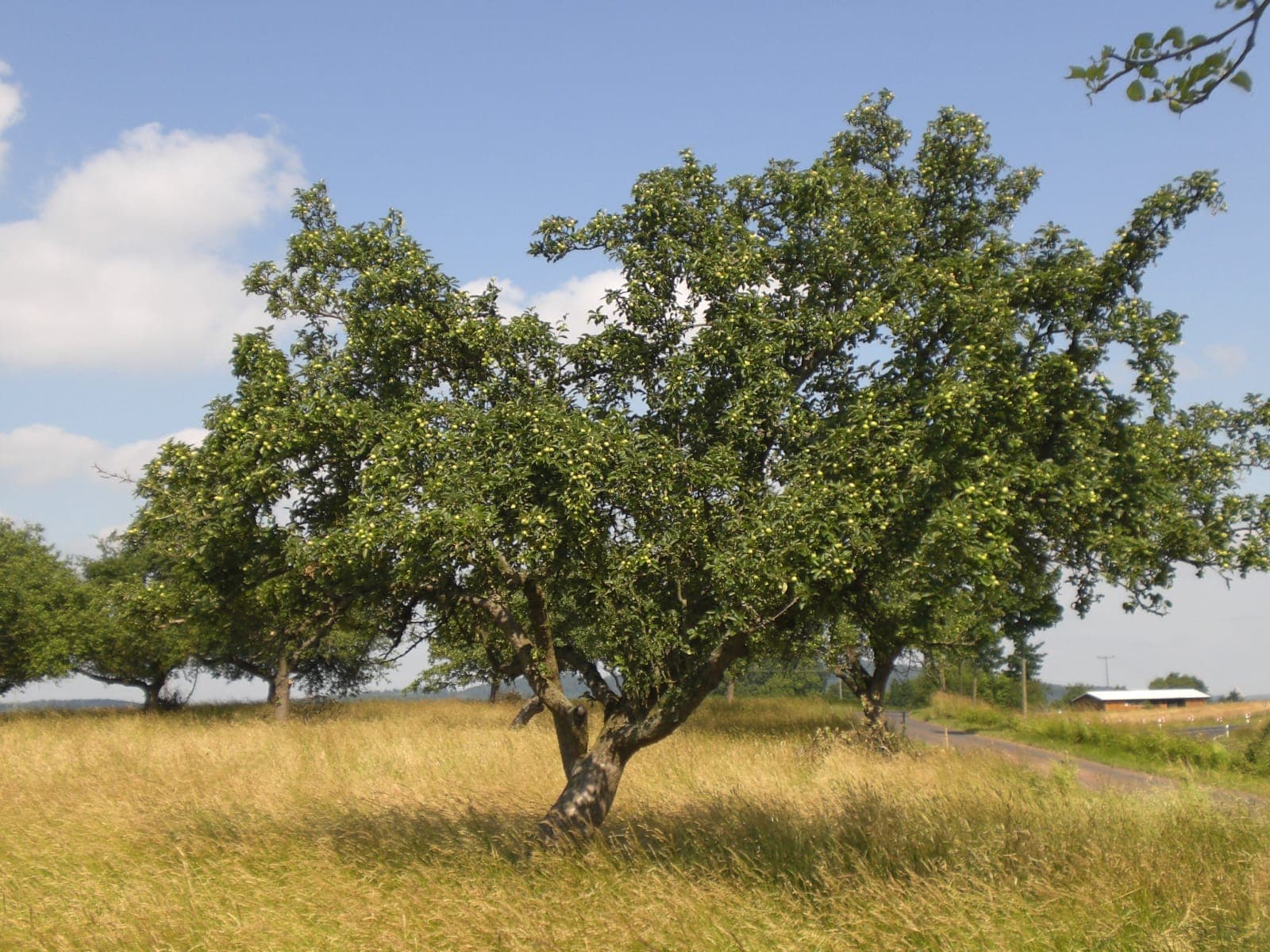 sind die heimischen Streuobstwiesen. Wir sprechen von Streuobstwiesen, wenn mehrere Dutzend Obstbäume verstreut auf einer Wiese leben. Im Gegensatz zu konventionellem Plantagenanbau beheimaten sie bis zu 5.000 Tier- und Pflanzenarten und zählen so zu den artenreichsten Biotopen Mitteleuropas!